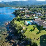 Die Villa Aigue Marine - Front De Mer bietet einen Blick auf den Garten. Die Unterkunft in Verghia verfügt über ein Badezimmer mit einer getrennten Toilette und einer Dusche. Es gibt einen Haartrockner und Handtücher für den Komfort der Gäste.